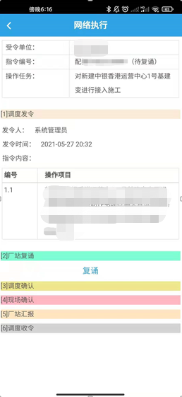 Traditional dispatching commands are issued by telephone, which has shortcomings such as easy homophonic disturbance, busy telephone and striding operation. The dispatching orders need to introduce a new way based on computer network to make up for the shortage of telephone orders, and meet the requirements for timeliness of the integration of regulation and control for dispatching orders. To solve this problem, the system, based on China Southern Power Grid Mobile Application Platform 2.0, overcomes the problems of complicated business data flow (power supply bureau - mobile application platform - Extranet), complicated business processes, etc., thus realizing the transmission and release of preparatory dispatching commands between the upper and lower dispatching centers, and between dispatching and plant stations.