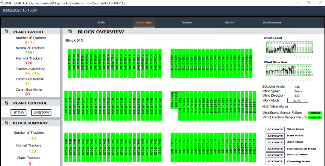 First of all, Tracker SCADA collects the information of the PV support bracket in real time. After conducting the overall processing for the real-time information, Tracker SCADA can accurately adjust the PV support bracket, and automatically optimize the inclination and direction of the PV panel according to the position of the Sun and weather conditions, so as to capture the solar energy as much as possible, or under a bad weather condition such as wind, sand, rain, snow, hail, etc., it can provide precision guidance to reduce or even avoid the damage to PV panels caused by natural disasters. Through these, Tracker SCADA can improve the power generation efficiency and prolong the PV panel’s service life.