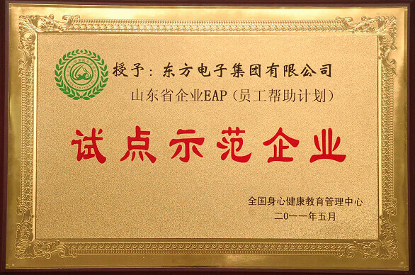 近日,全国身心健康教育管理中心授予金年会电子集团公司“山东省企业EAP(员工帮助计划)试点示范企业”称号。