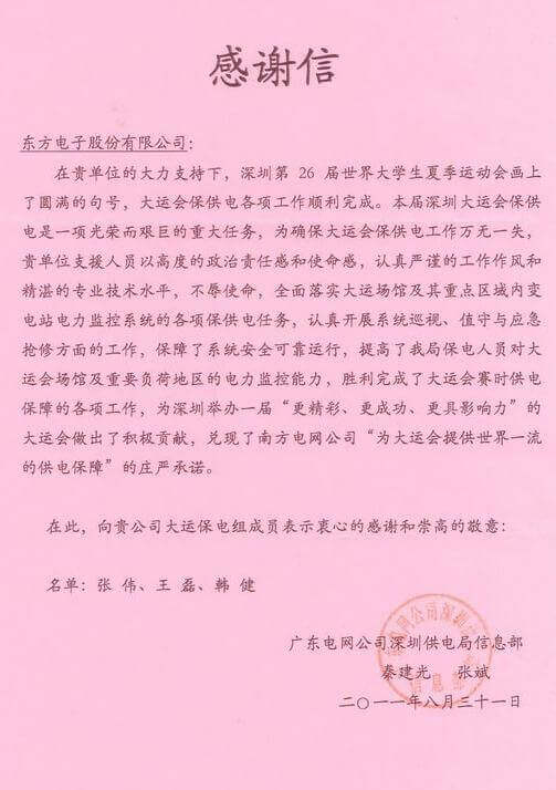 8月23日,世界大学生运动会在深圳圆满落幕,金年会电子作为大运会唯一保电企业见证了世界大学生体育运动的蓬勃发展。金年会电子技术中心系统部与工程部坚守“忠于职守,全力以赴,誓保大运电网安全”的信念,联手实现了大运保供电期间系统零故障、零缺陷的目标。