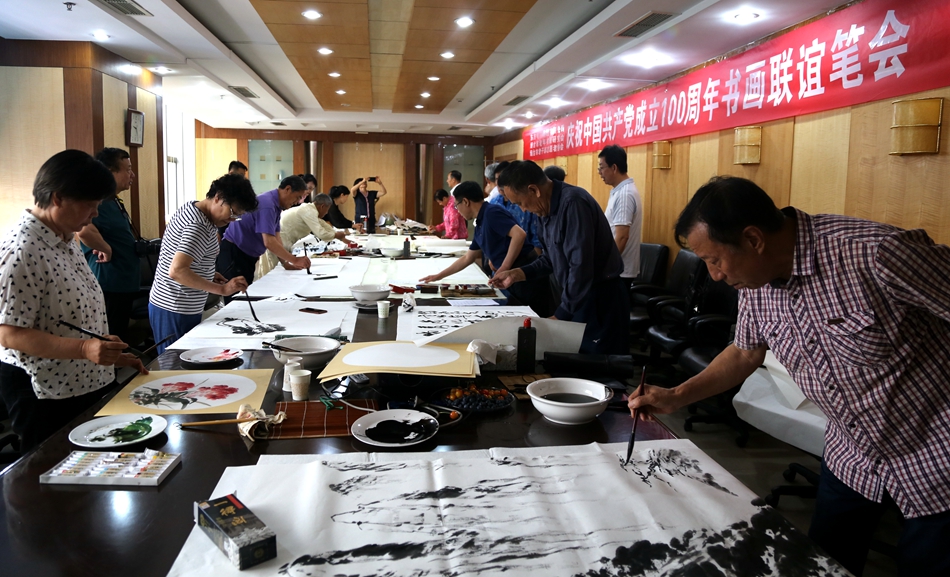 为庆祝中国共产党成立100周年,回顾党的奋斗历程,歌颂美好新时代,助力公司企业文化建设。6月24日,金年会电子集团有限公司、烟台市老年书画研究会、烟台市老干部志愿者协会共同举办“庆祝中国共产党成立100周年联谊书画笔会”。本次活动共有18位县处级退休老干部书画家参加。